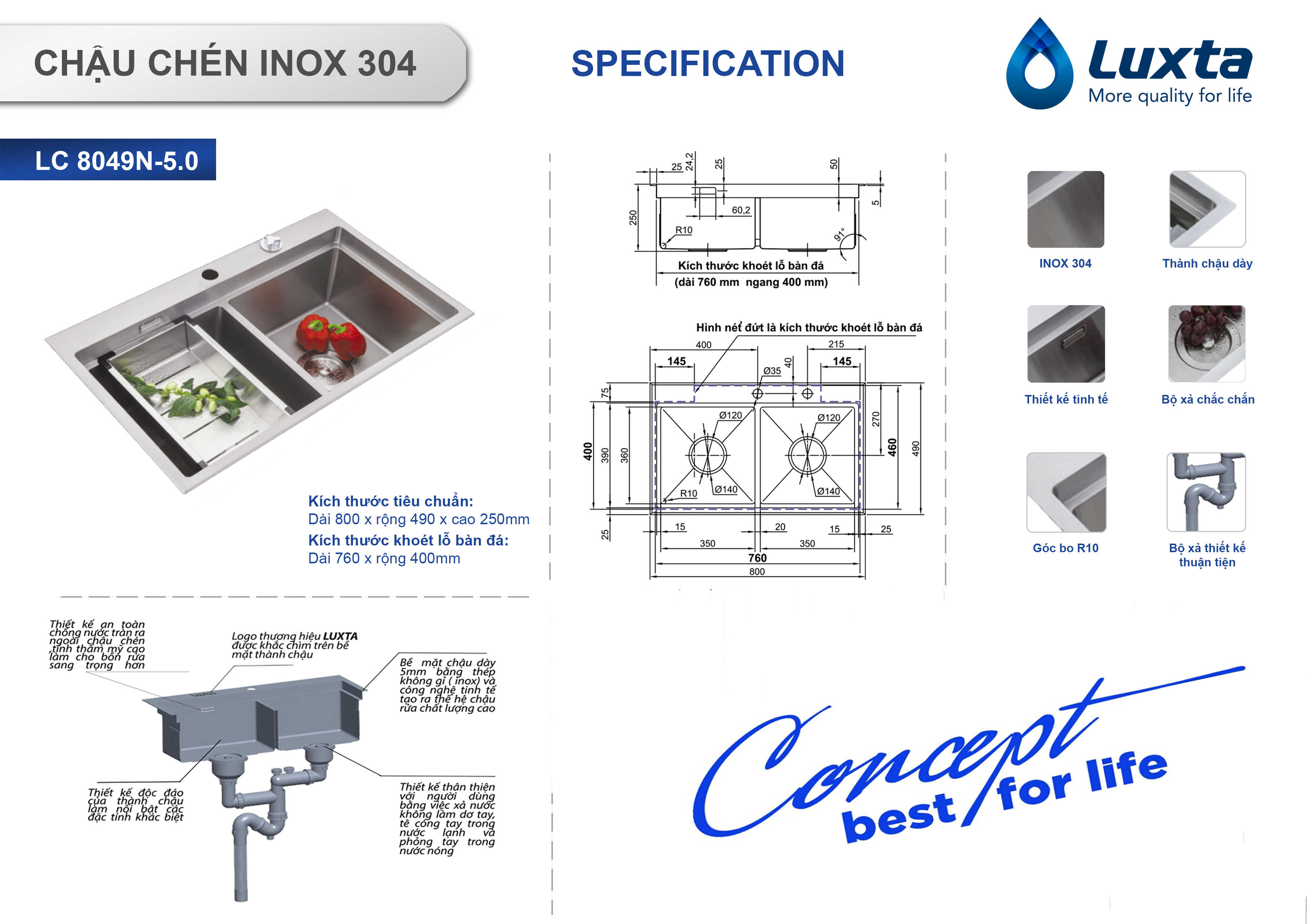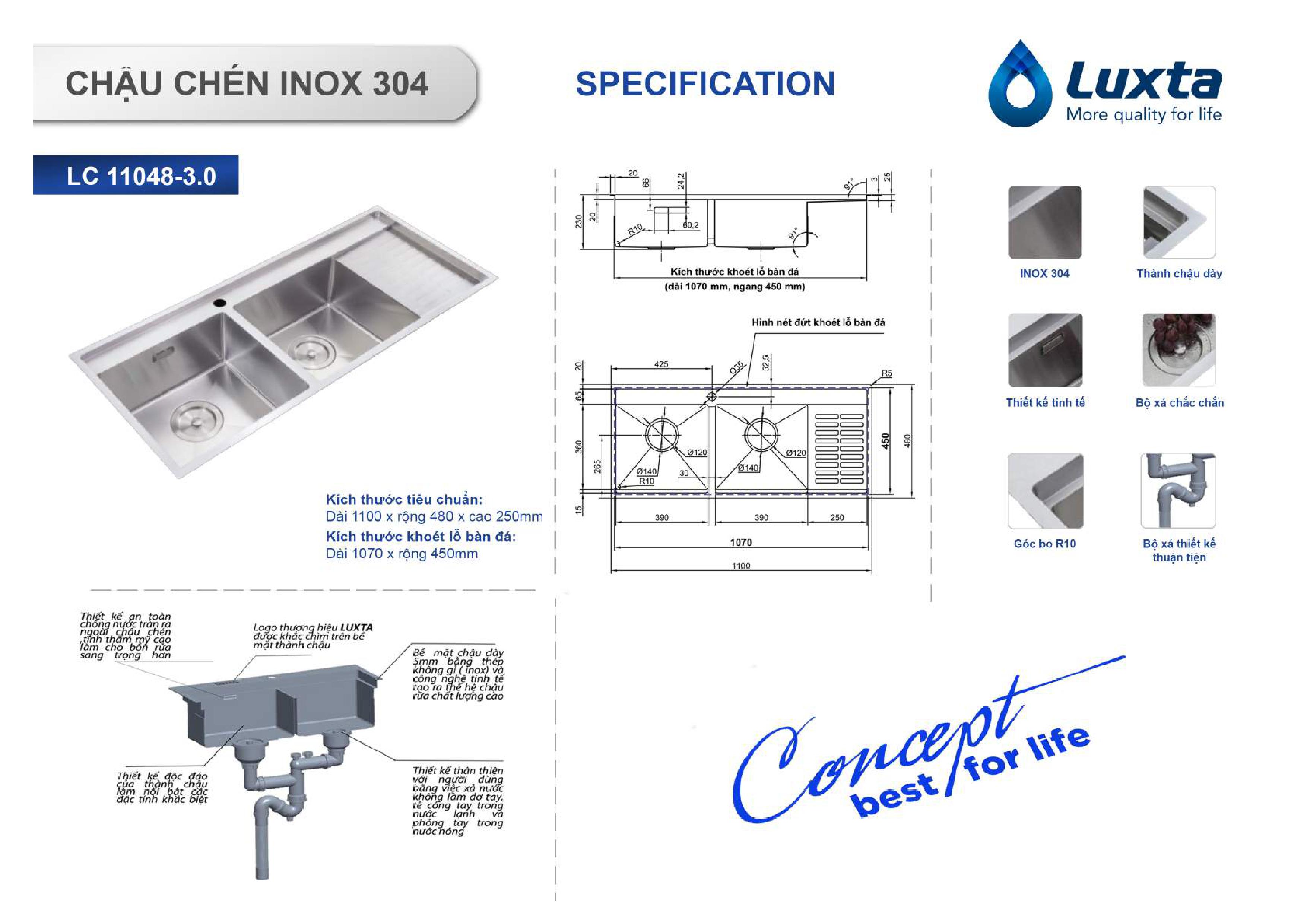 Mỗi sản phẩm chậu chén inox 304 trên sẽ có mỗi đặc tính và công dụng còn tùy vào nhu cầu khi khách hàng sử dụng. Ngoài ra, thương hiệu Luxta còn có 2 cách lắp đặt như : lắp dương và âm mặt đá để phù hợp nhu cầu khách sử dụng.