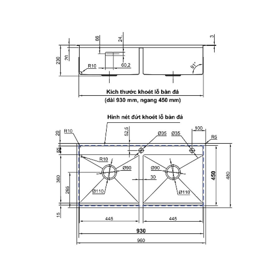 ✔ Chậu inox nóng lạnh, thiết kế hiện đại, sang trọng