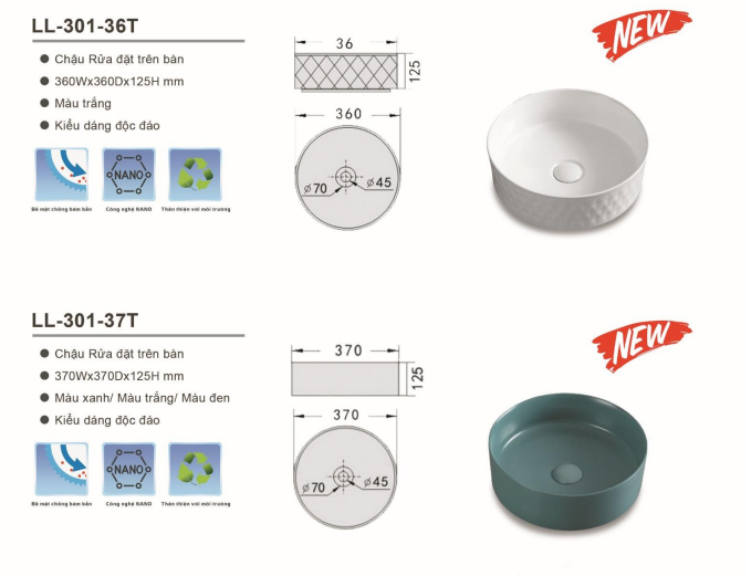 Chậu dương bàn có thiết kế cách tân đương đại, với kiểu dáng phù hợp với nhiều nhà có thiết sang trọng và đẳng cấp.