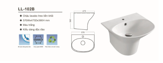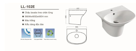 Chậu rửa mặt treo tường là loại chậu được bắn vít, treo trên tường. Đây cũng là loại chậu rửa thông dụng nhất, phù hợp với mọi công trình và nhà ở. Chậu treo tường còn được chia thành nhiều loại nhỏ dựa vào hình dáng chân chậu, bao gồm: chậu treo liền khối, chậu treo chân lửng.